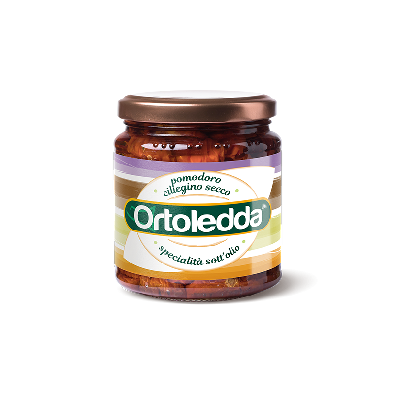 Pomodoro ciliegino secco (60%), olio di semi di girasole, sale, aglio, basilico.